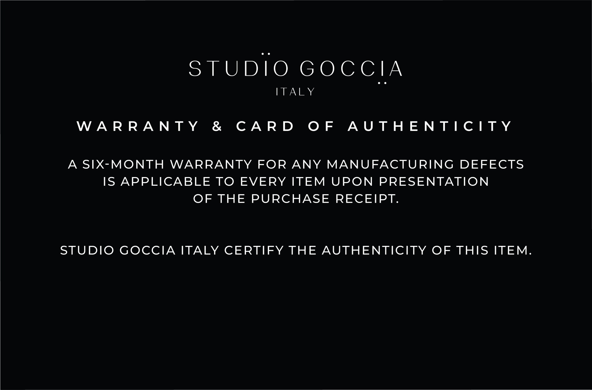 If you have any questions or need assistance, we are happy to help. Simply send us an email at support@studiogoccia.com, and we will address your inquiry as quickly as possible, excluding holidays and during our business breaks.